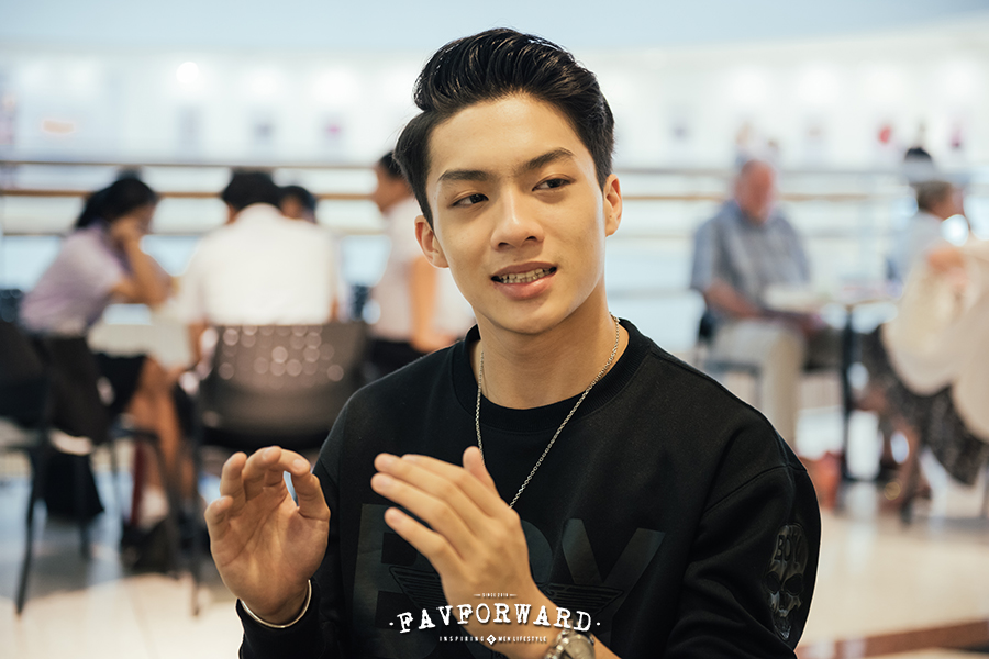จริงๆ แล้ว ตัวผมเป็นคนที่แอคทีฟอยู่แล้วครับ เป็นคนชอบเล่นกีฬา เมื่อก่อนผมก็เล่นยิมนาสติกด้วย ก่อนจะมาเป็นนักร้อง เค้าส่งผมไปเรียนยิมนาสติกสามเดือน ผมกระโดดตีลังกาเองได้ ในเรื่องผมก็กระโดดตีลังกาเองด้วย