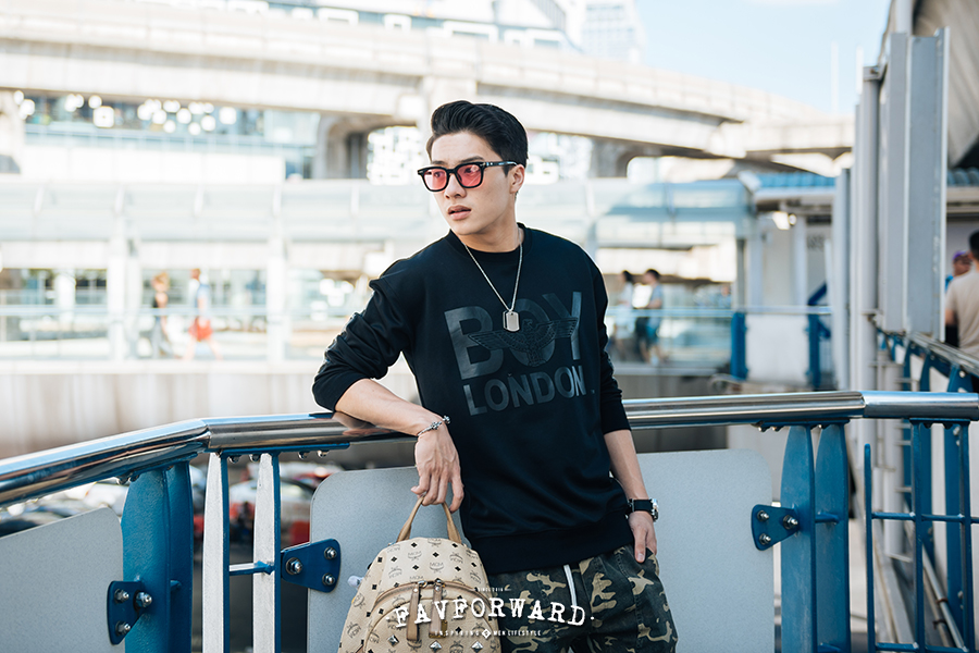 แว่นตา กำไลข้อมือ นาฬิกา กระเป๋าเป้ แล้วก็รองเท้าสนีกเกอร์แนวสตรีทครับ ส่วนสร้อยเส้นนี้ ถึงไม่ได้ใส่ ก็จะเก็บไว้กับตัวครับ เป็นของที่รักมาก พี่สาวของผมซื้อให้ คือ ก่อนหน้านี้พี่สาวก็เคยให้สร้อยแล้ว แต่ผมทำหาย เสียดายมาก พอพี่สาวซื้อเส้นใหม่มาให้ ก็จะเก็บไว้ติดตัวตลอดเลยครับ กลัวหายอีก