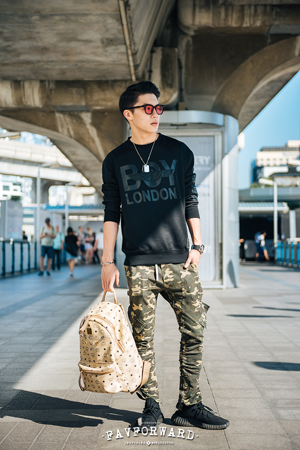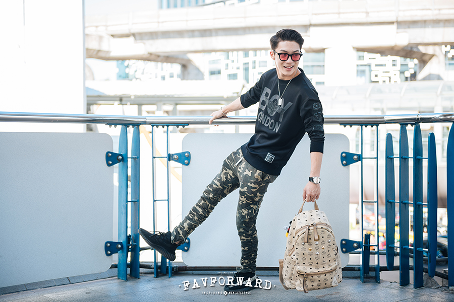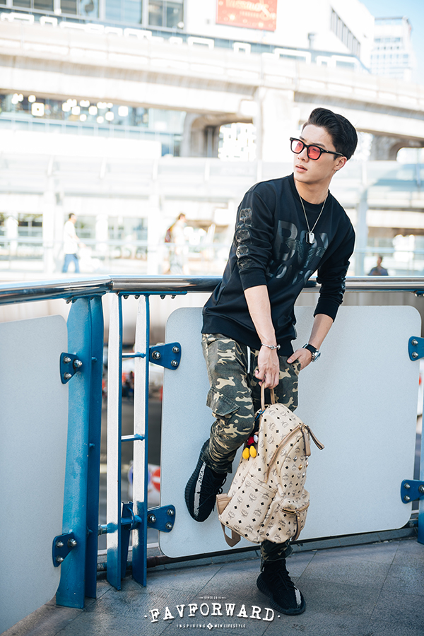 เป็นคนชอบแต่งตัวสบายๆ แนวสตรีท แล้วแต่วัน บางวันก็ใส่ jogger pants หรือไม่ก็ใส่กางเกงยีนส์ครับ ส่วนเสื้อก็แนวสตรีทแบรนด์ อเมริกา เกาหลี ญี่ปุ่น ส่วนแพทเทิร์น ก็แล้วแต่ฟีลครับ ใส่หมวกบ้าง ประมาณนี้ครับ