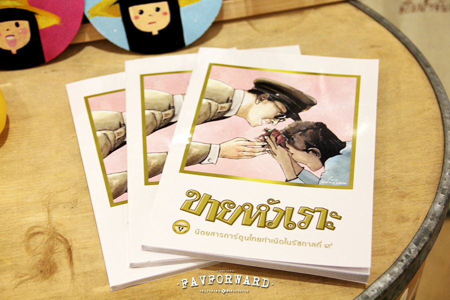 เริ่มจากที่พี่ทำหนังสือทำมือแล้วไปขายตามงาน มันฮิตอยู่ช่วงหนึ่งเมื่อหลายปีที่แล้ว แต่ตอนนั้นก็เขียนการ์ตูนอยู่แล้วที่ วิบูลย์กิจ เป็นการ์ตูนเรื่องยาว อย่าง “แก๊งซ่าคาถาแสบ” หรือ “Sea World อภินิหารสุดขอบโลก” เป็นการ์ตูนไทยรายสัปดาห์แทรกกับการ์ตูนญี่ปุ่น แล้วก็มีพี่ที่รู้จักกันย้ายไปทำที่ บรรลือสาส์น พอดีกับเค้ากำลังหาคนไปออกแบบลายกระเป่าผ้า พี่เค้าก็นึกถึงเรา ก็ชวนไปออกแบบ ทำจนจบโปรเจค ต่อมามีงานสัปดาห์หนังสือ เค้าอยากทำหนังสือทำมือเพื่อถวายสมเด็จพระเทพฯ เค้าเห็นเราทำหนังสือทำมืออยู่ เค้าก็เรียกเราเข้าไปทำ