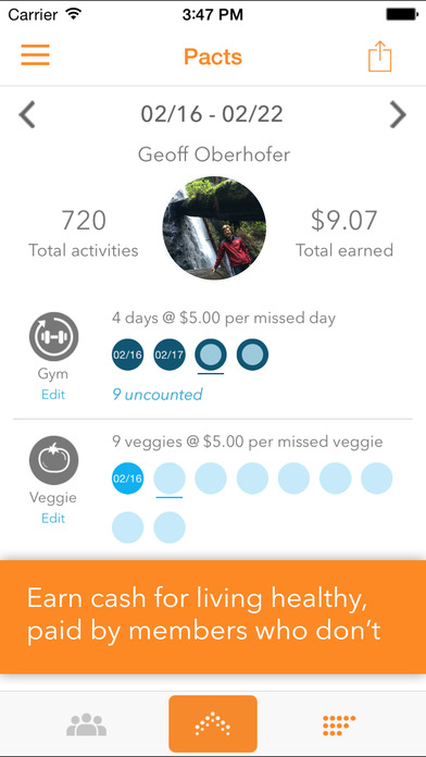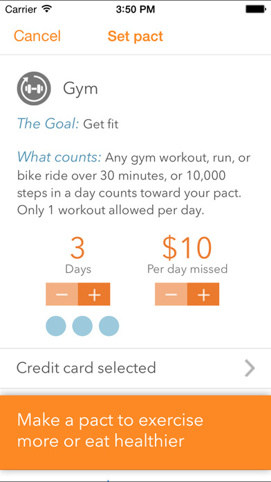 จริงอยู่ที่การพนันเป็นสิ่งไม่ดี แต่บางครั้งการต้องเสียเงินเสียทองก็ทำให้เราเกิดอาการฮึดในการออกกำลังกายได้ เช่นเดียวกันกับแอพพลิคชั่น Pact โดยแอพฯ ที่มีแนวคิดง่ายๆ เพียงแค่เรากำหนดเป้าหมายของการออกกำลังกายในแต่ละวันเอาไว้ หากคุณสามารถทำตามเป้าหมายที่วางไว้ได้ คุณก็จะได้รับรางวัล ซึ่งก็คือเงินสดที่โอนเข้าบัญชี ในทางตรงกันข้ามหากคุณไม่สามารถทำตามเป้าหมายที่วางไว้ได้ คุณก็จะต้องเสียเงินนั่นเอง