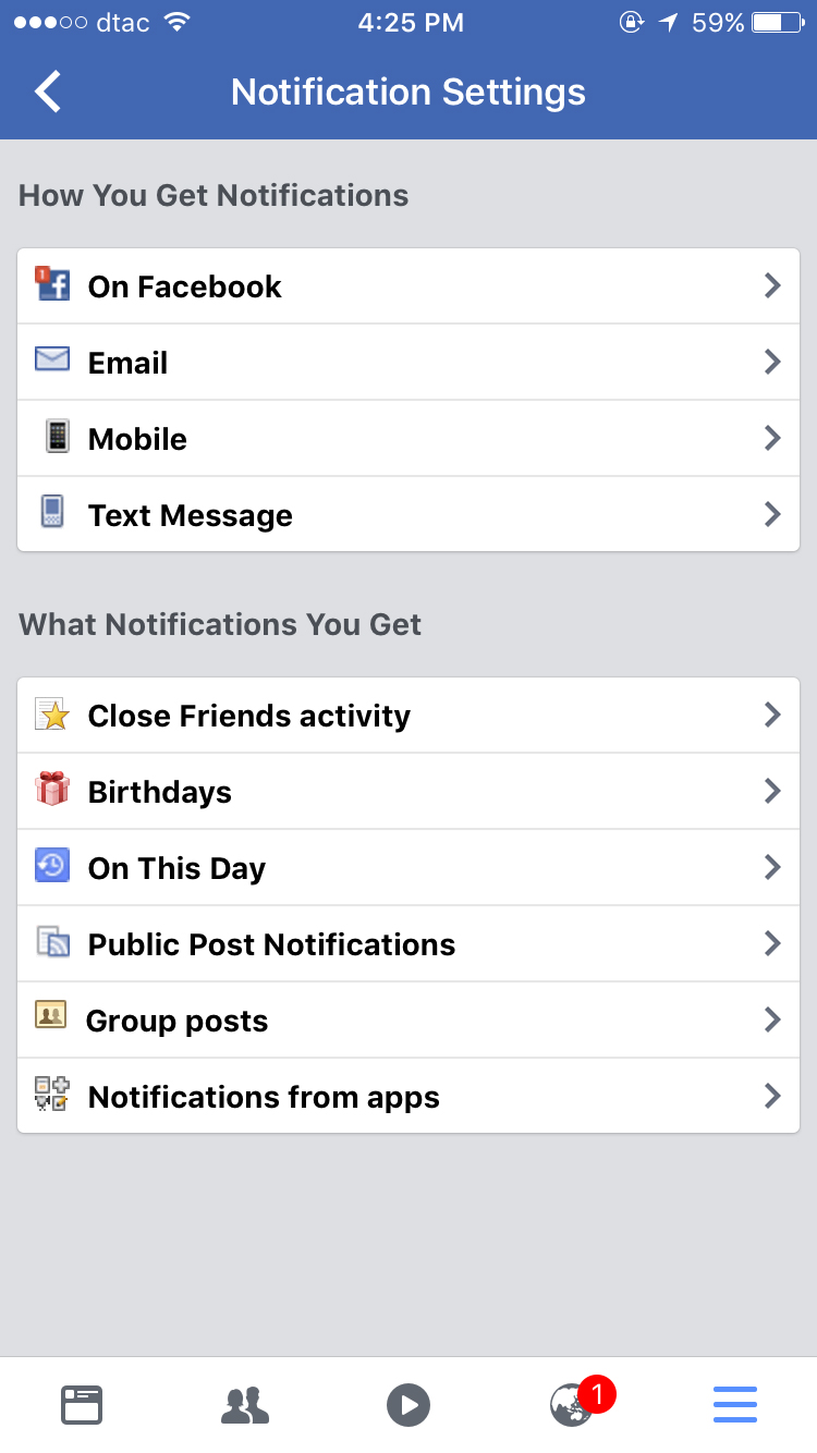 เราสามารถตั้งค่าให้เฟซบุ๊กแจ้งเตือน Notifications เฉพาะสิ่งที่เราสนใจได้ (หรืองดการแจ้งเตือนสิ่งที่ไม่สนใจนั่นเอง) วิธีการคือ