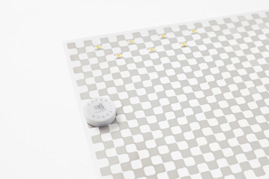 โดยผลงานดีไซน์ใหม่นี้มีชื่อว่า “Paper Torch” ซึ่งเป็นการนำกระดาษมาแฝงเทคโนโลยีด้วยการตีพิมพ์วงจรไฟฟ้าลงบนพื้นผิวทั้งสองด้านของกระดาษ พร้อมหลอดไฟ LED ชนิดพิเศษ 7 ดวงที่ถูกทากาวติดเอาไว้ ซึ่งกาวนี้ทำหน้าที่เป็นสื่อกระแสไฟฟ้า ทำให้ได้กระดาษขนาดไม่ใหญ่นี้สามารถส่องแสงได้เพียงแค่ม้วนกระดาษเข้าด้วยกัน จนกลายเป็นไฟฉายและโคมไฟขนาดเล็ก
