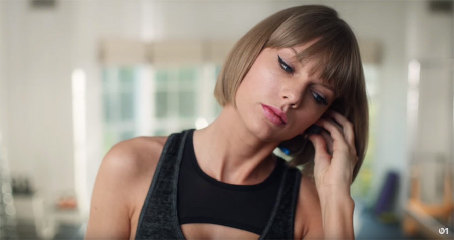 ในภาพยนตร์โฆษณา ชุด TAYLOR vs. TREADMILL มีความยาว 1.01 นาที นำแสดงโดยสาว Taylor ในชุดกีฬารัดรูปสุดสปอร์ตบนลู่วิ่ง ซึ่งเธอได้เปิดเพลงผ่าน iPhone โดยใช้บริการ Apple Music ในหมวดเพลงสำหรับฟังเวลาออกกำลังกาย (#GymFlow) ซึ่งเธอได้วิ่งไปเรื่อยๆ จนกระทั่งเธอร่วงลงจากลู่วิ่ง พร้อมคำโฆษณา Distractingly Good. , All the music you want. และปิดท้ายว่า Apple Music Get Three Months Free Now. นับเป็นโฆษณาที่แฝงไว้ด้วยความตลกขบขันของนักร้องสาวได้เป็นอย่างดี