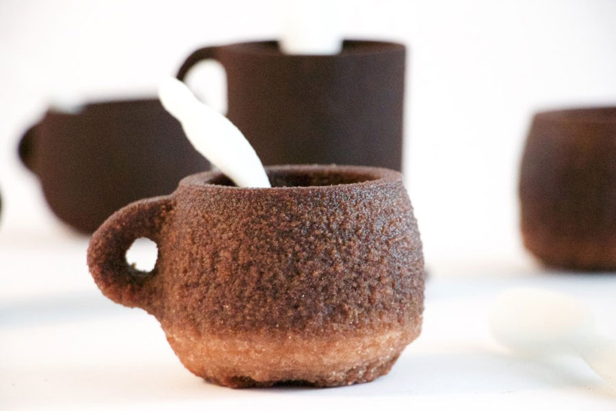 เทคโนโลยีพิมพ์ 3 มิติไม่เพียงแต่ผลิตชุดกาน้ำชาที่ผลิตจากผงชาสำเร็จรูปเท่านั้น แต่ยังมีการนำวัตถุดิบอื่นๆ มาผลิตเป็นของใช้อื่นๆ เช่นกัน อาทิ ขวดเกลือที่ผลิตจากเกลือ และแก้วกาแฟที่ผลิตจากผงกาแฟอีกด้วย