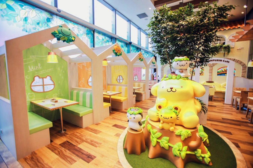 คาเฟ่ปอมปอมปุรินแต่ละที่ตั้งนั้นสร้างสรรค์ธีมและคาแรคเตอร์ในการตกแต่งให้แตกต่างกันขึ้นอยู่กับที่ตั้งและอารยธรรมรอบๆ เมือง ซึ่งที่สิงคโปร์ใช้ไอเดียการตกแต่งในธีม “Garden City” ได้รับแรงบันดาลใจมาจากถนนที่ปกคลุมด้วยเมืองต้นไม้รอบๆ เกาะเล็กๆ ภายในตกแต่งในสไตล์อิงธรรมชาติ ใช้ลวดลายของไม้ผสานความน่ารักของปอมปอมปุรินด้วยการทำลายบนเก้าอี้นั่งและโต๊ะทานอาหาร เตะตาตั้งแต่ทางเข้าด้วยปอมปอมปุรินตัวใหญ่ที่ยืนยิ้มแฉ่งอยู่กับผองเพื่อน ที่นั่งภายในร้านรองรับจำนวนคนได้มากถึง 78 ที่นั่ง แต่ละที่เสมือนได้เข้าไปนั่งในบ้านของปอมปอมปุริน ออกแบบลักษณะให้เป็นจั่วหลังคาหลากสีหลากสไตล์