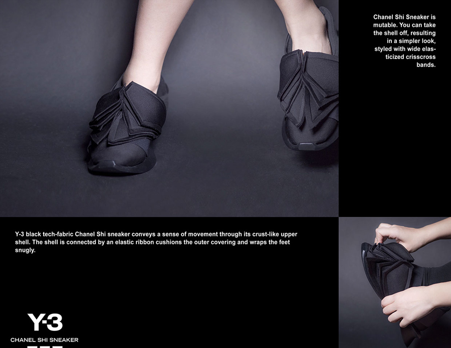 เมื่อมีแรงบันดาลใจ ไอเดียใหม่ๆ จึงเกิดขึ้น เช่นเดียวกันกับรองเท้าคู่นี้ “The Y-3 Shoe” ผลงานการออกแบบของ Chanel Shi โดยความน่าสนใจของรองเท้าคู่นี้อยู่ที่จุดเริ่มต้นของแรงบันดาลใจ นั่นเพราะรองเท้า The Y-3 Shoe มีแรงบันดาลใจจาก ‘เปลือกกุ้ง’ ซึ่งทำหน้าที่เสมือนเสื้อผ้าที่คอยปกป้องตัวเองจากสิ่งอันตราย เช่นเดียวกันกับรองเท้าคู่นี้ที่ออกแบบมาให้มีเปลือกหุ้มตัวเองเพื่อปกป้องเท้าของเรา แม้วัสดุและการออกแบบฐานรองเท้าจะไม่ได้หวือหวา แต่การเสริมเปลือกหุ้มให้รองเท้าก็ทำให้ The Y-3 Shoe กลายเป็นรองเท้าที่มีรูปลักษณ์แปลกตา โดยหน้าที่หลักเปลือกหุ้มรองเท้านี้ นอกจากจะเป็นเครื่องประดับเพิ่มความเก๋ให้รองเท้าแล้ว ยังทำหน้าที่ให้ความอบอุ่นแก่เท้าในช่วงฤดูหนาวอีกด้วย ขณะเดียวกันก็สามารถถอดเปลือกออกเพื่อโชว์ความเรียบง่ายที่ซ่อนอยู่ภายในและจะกลายเป็นรองเท้าใส่สบายที่สามารถระบายความร้อนได้ดีเมื่อย่างเข้าสู่ฤดูร้อนได้เช่นกัน