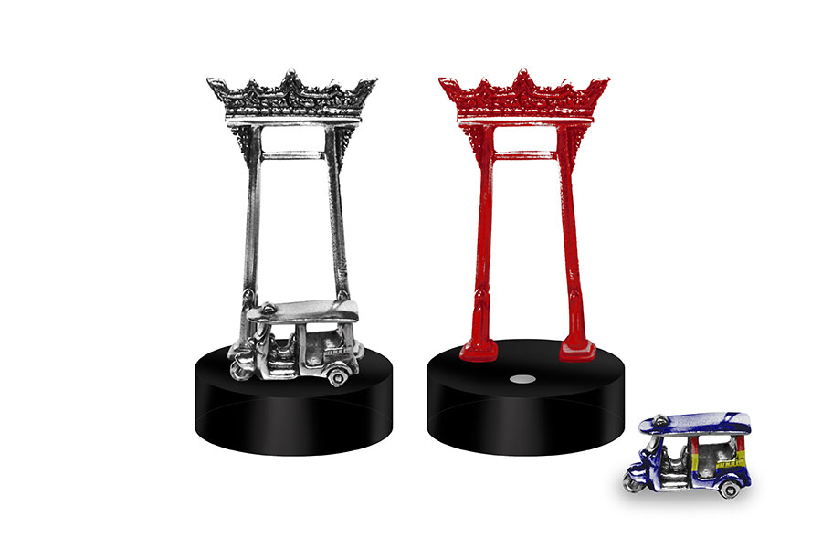 กล่องใส่นามบัตรไม้ ลายยักษ์วัดแจ้ง / รถตุ๊ก-ตุ๊ก / เสาชิงช้า