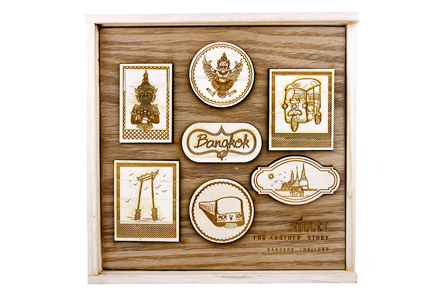 ชุดแม่เหล็กตกแต่งบ้านมาพร้อมกล่องฝาสไลด์ไม้ลาย Bangkokian