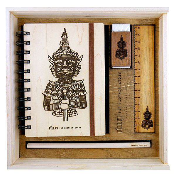 ชุดเครื่องเขียนไม้มาพร้อมกล่องฝาสไลด์ไม้ ลายยักษ์วัดแจ้ง