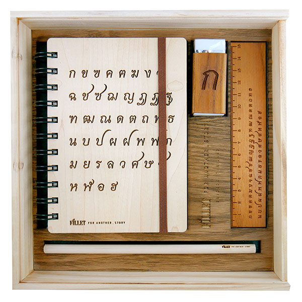 ชุดเครื่องเขียนไม้ พร้อมกล่องฝาสไลด์ ลายตัวอักษรไทย