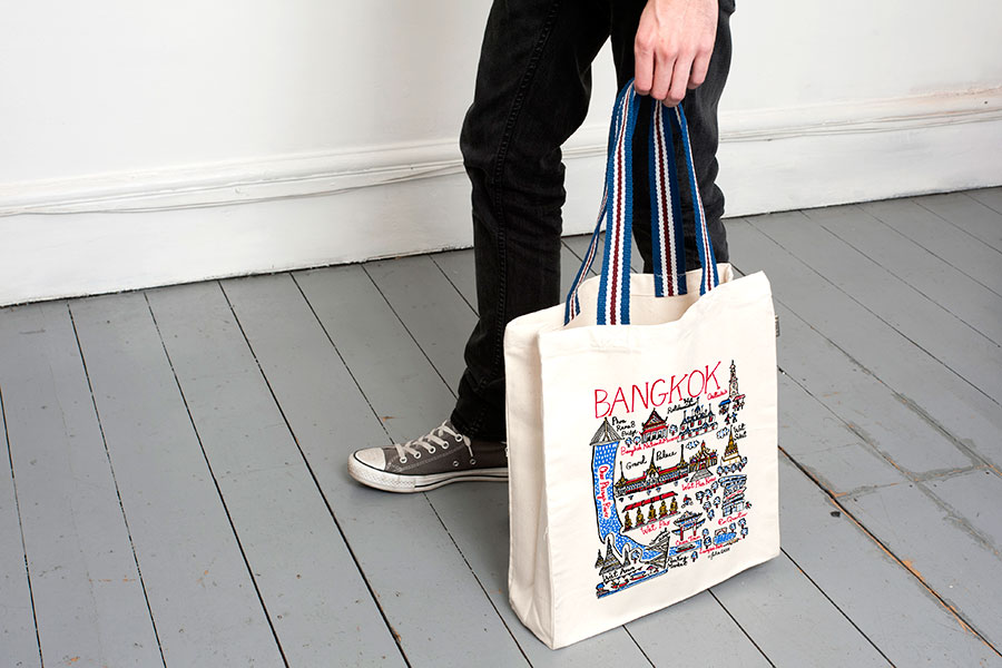 กระเป๋าผ้าลายเมืองกรุงเทพโดย Julia Gash