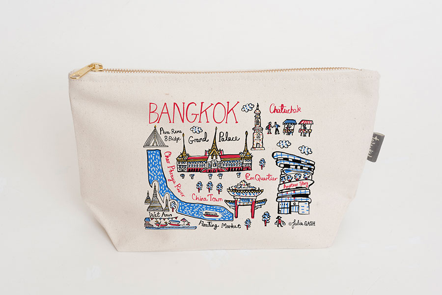 กระเป๋าผ้าใส่ของลายเมืองกรุงเทพโดย Julia Gash
