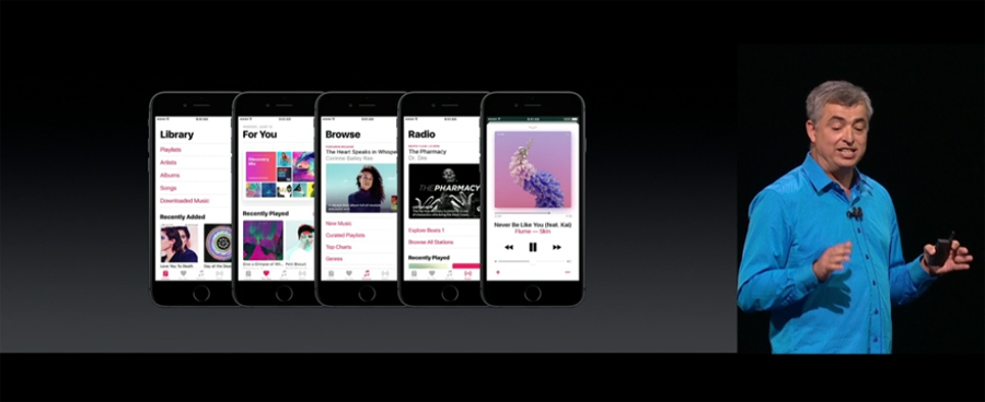 สิ่งที่ผู้ใช้หลายๆคนบ่นกันระงมคือระบบอินเตอร์เฟสของเจ้า Apple Music ที่ใช้งานค่อนข้างยากจนเกิดความสับสน แอปเปิ้ลรู้ข้อเสียในจุดนี้ดีจึงยกเครื่องเจ้า Apple Music ใหม่ให้ใช้งานได้ง่ายยิ่งขึ้น โดยเน้นโทนสีขาว-ดำและความเรียบง่ายอันเป็นเอกลักษณ์ นอกเหนือไปจากนั้นยังรองรับระบบเนื้อเพลงให้เราได้อ่านเนื้อร้องไปตามเพลงที่ฟังอีกด้วย