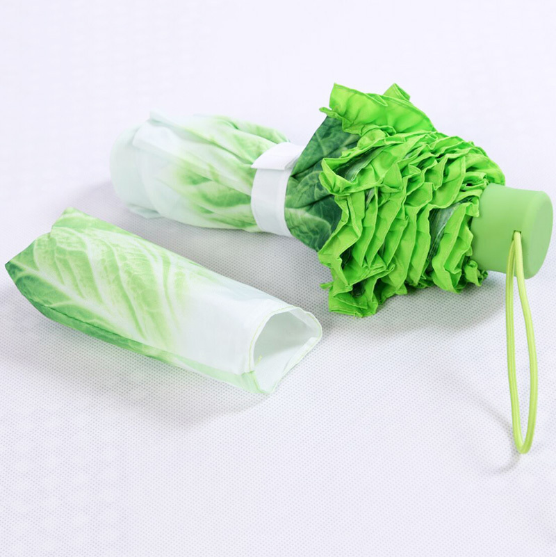 ถ้าไปจ่ายตลาดมา แล้วเผลอวางร่มกะหล่ำทิ้งไว้ คงหยิบผิดเอาเสียดื้อๆ เพราะร่มผักกาดขาวนี้เมื่อม้วนเก็บจะมีรูปทรงมองดูคล้ายผักกะหล่ำจริงอยู่ไม่น้อย พกติดกระเป๋าไว้ดูน่ารักน่าใช้งาน