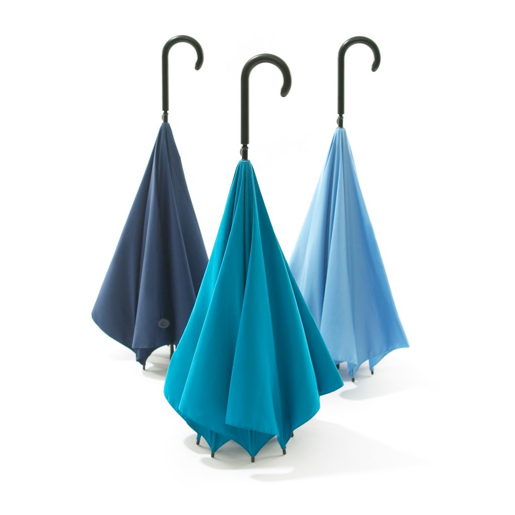 ไม่ได้สะกดผิดคำว่า “ร่ม” แต่นี่คือร่มชนิดใหม่ออกแบบมาให้กลับหัว โดยเฉพาะเวลาที่ฝนฟ้ากระหน่ำและลมพัดร่มเราจนสลับกลับด้านไปหมด ปัญหานี้แก้ไม่ยากแค่เปลี่ยนมาใช้ร่มกับหัวซะเลย ออกแบบโครงเหล็กของร่ม UnBRELLA ให้อยู่ด้านนอก มองผ่านๆ นึกว่าร่มโดนลมพัดจนมันพังไปเสียแล้ว เด่นสะดุดตาสุดๆ ซึ่งการที่มันกลับด้านนั้นไม่ได้มีจุดเด่นแค่หน้าตาอย่างเดียว แต่ยังช่วยทำให้สะดวกสบายมากขึ้น เช่น สามารถกางร่มได้ง่าย, หรือสามารถใช้เป็นไม้เท้าก็ดี แถมสามารถตั้งกับพื้นได้โดยไม่ต้องมีที่เก็บร่มอีกด้วย