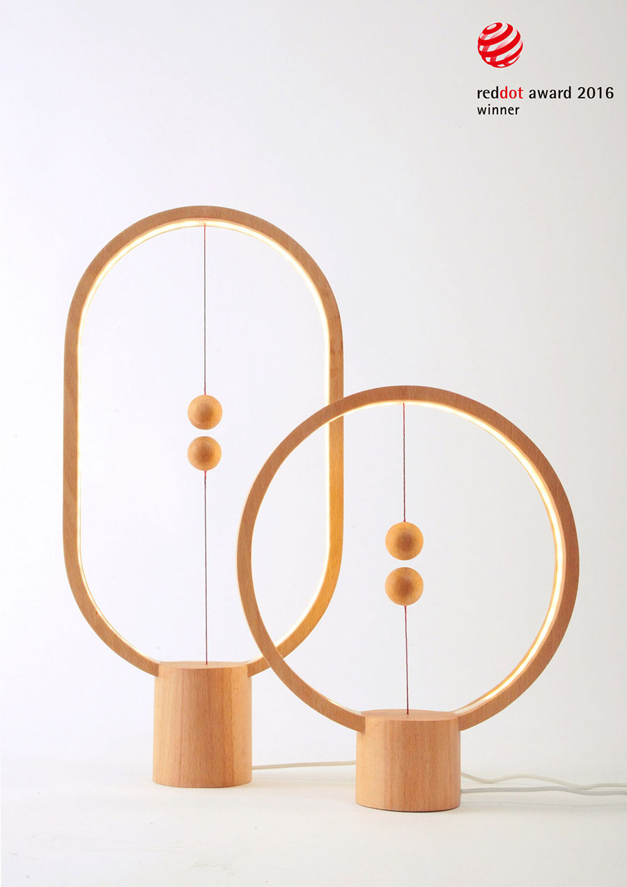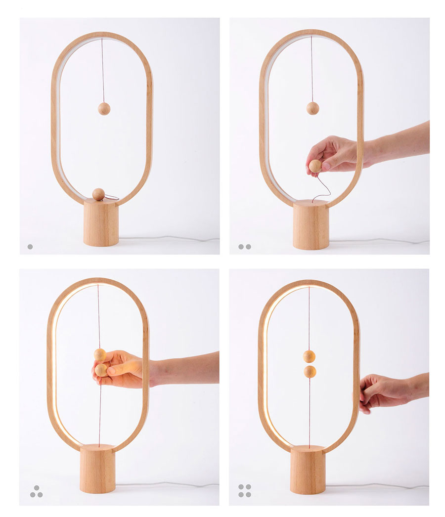 ความเจ๋งชวนให้เราสนใจของโคมไฟที่มีชื่อว่า Heng นี้อยู่ที่ระบบ ‘เปิด-ปิด’ ซึ่งใช้แรงดึงดูดของแม่เหล็กและระบบสั่นทำหน้าที่เป็นสวิตซ์ไฟ โดยมีลูกตุ้มจากไม้เป็นหัวใจสำคัญ เมื่อแม่เหล็กภายในลูกตุ้มไม้ดึงดูดกัน หลอดไฟที่ซ่อนอยู่รอบๆ ก็จะสว่างขึ้น ในทางกลับกัน หากดึงลูกตุ้มไม้ออกห่างจากกันก็จะเป็นการปิดสวิตซ์ไฟนั่นเอง ผนวกกับการออกแบบในสไตล์มินิมอลชวนอบอุ่น ทำให้โคมไฟ Heng เป็นอีกหนึ่งผลงานการออกแบบสุดคูล โดยมีรางวัลชนะเลิศ Reddot Design Award ในปี 2016 การันตีคุณภาพ สำหรับโคมไฟสไตล์มินิมอลชวนอบอุ่นนี้ที่แฝงแนวคิดฉลาดๆ นี้เป็นผลงานการออกแบบของดีไซเนอร์ชาวจีน Zanwen Li