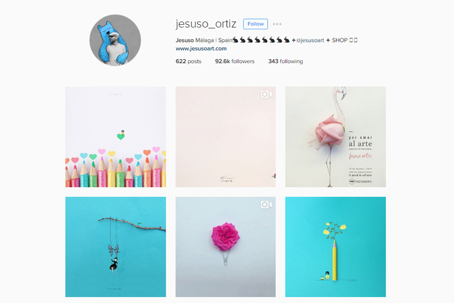 “งานของผมเกิดจากจินตนาการที่ได้จากของใกล้ตัว โดยผมพยายามส่งผ่านจินตนาการและความรู้สึกด้วยการเล่าเรื่องผ่านภาพเพียงภาพเดียว ซึ่งการใช้สิ่งของและดอกไม้ทำให้งานของผมน่าสนใจมากขึ้น ทั้งภาพที่มีมิติและความเรียบง่ายของภาพในสไตล์มินิมอล” ดังนั้นจึงไม่ใช่เรื่องแปลกหากผลงานของ Jesuso จะเป็นผลงานที่แม้จะดูความเรียบง่าย แต่ก็ให้อารมณ์หวานละมุน ผนวกกับจินตนาการแบบไร้กรอบ ทำให้ผลงานของเขาน่ารักและน่าจับตามองจนต้องตามไป follow!!