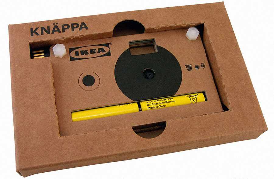 หนึ่งในผู้ผลิตเฟอร์นิเจอร์ระดับโลกอย่าง Ikea (อิเกีย) ก็ไม่พลาดที่จะออกกล้องกระดาษสุดเจ๋งภายใต้แบรนด์ตัวเองที่มีชื่อว่า Ikea Knappa แต่ขอบอกก่อนเลยว่ากล้องรุ่นนี้ผลิตขึ้นเพื่อโปรโมทแบรนด์โดยการแจกให้ลูกค้าในวันเปิดตัวของสาขาตามประเทศต่างๆเพียงเท่านั้น ซึ่งเสป็คคร่าวๆของกล้องกระดาษ Ikea Knappa นั้นมาพร้อมความละเอียด 1.2 เมกะพิกเซล มี View Finder ในตัว , Image Stabilizer (ระบบป้องกันการสั่นไหว) และ Optical Zoom (ซูมส์จากตัวเลนส์) ภายในตัว โดยใช้เพียงแค่ถ่าน AAA และสามารถ Sync ลงเครื่องคอมพิวเตอร์ได้