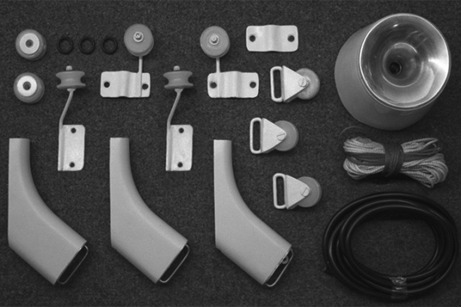 โคมไฟเพดานตัวนี้ทำจากวัสดุหลักๆจำพวก พีวีซี อลูมิเนียมและเหล็กบางส่วน หลักการเคลื่อนที่ก็มาจากกลไกง่ายๆผ่านการชักรอกที่ติดตั้งเอาไว้บริเวณมุมห้อง โดยรอก 3 ตัวนี้จะเป็นตัวควบคุมทิศทางของโคมไฟที่ผู้ใช้งานกำหนดพื้นที่เอาไว้ เช่น โซฟาดูหนัง โต๊ะทำงาน เป็นต้น ซึ่งเพียงแค่ชักรอกโคมไฟก็สามารถเดินทางไปยังจุดต่างๆภายในห้องได้โดยไม่ต้องลงมือเคลื่อนย้ายให้เสียเวลา นอกจากนั้นเองรูปทรงเรขาคณิตของเชือกที่เกิดขึ้นเมื่อโคมไฟอยู่ในที่ต่างๆของมุมห้องนั้น ก็เป็นการจงใจเล่นกับ Space ของดีไซน์เนอร์นั่นเอง