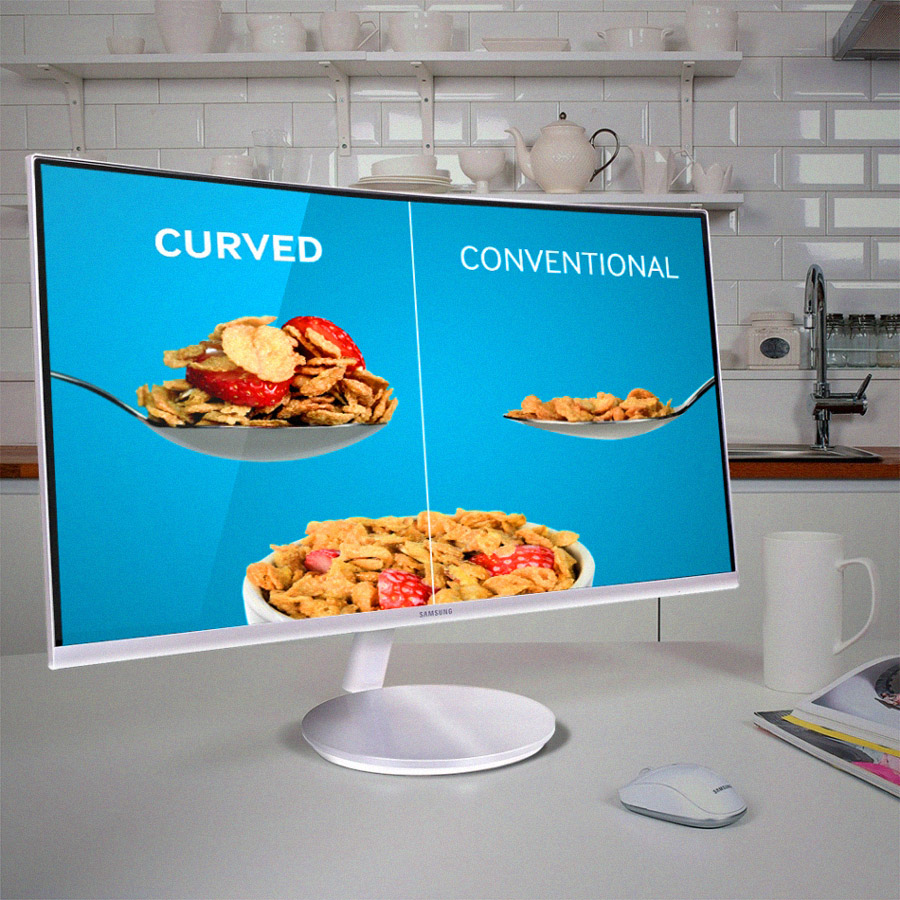 หรือแม้แต่การเลือกใช้นวัตกรรมของจอมอนิเตอร์โค้ง ก็สามารถช่วยลดอาการเมื่อยล้าของกล้ามเนื้อตาได้เช่นกัน ซึ่งในปัจจุบันได้มีผู้ผลิตหลายแบรนด์ที่สร้างสรรค์นวัตกรรมนี้ออกมา เช่น Samsung Curved Monitor ที่โค้งรับระดับสายตา เพราะมีรัศมีความโค้งถึง 1800R ซึ่งทำให้การหักเหของแสงจากสภาพแวดล้อมรอบๆเข้าสู่สายตาลดลง จึงทำให้ลดอาการจอสะท้อน พร้อมทั้งให้มิติความลึกและตัดแสงรบกวนรอบข้างแก่ผู้ใช้งานได้เป็นอย่างดี