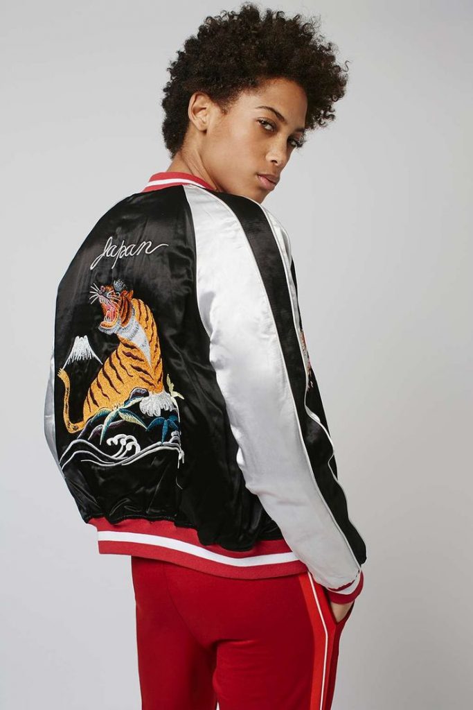 วนมาอีกหนึ่งระลอก ต่อแถวตามมาจากเสื้อแจ๊กเก็ตมิลิทารี่ ดูเหมือนจะไม่ใช่เรื่องใหม่ แต่ก็วนกลับมาใส่ได้เรื่อยๆ ยังไงก็เท่ โดยเฉพาะถ้าใครอยากได้ลุคสตรีท เราขอแนะนำว่าบอมเบอร์ตัวนี้แหละเพิ่มดีเทลด้วยการปักลาย จะใส่กับยีนส์หรือกางเกงวอร์ม ช่วยอัพลุคเปลี่ยนความเชยเป็นสมาร์ทขึ้นทันที ตามไปดูวิธีแมตช์กัน