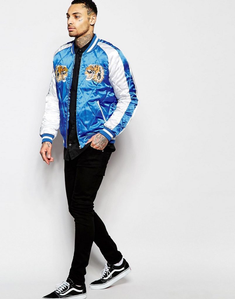 ด้วยเสื้อบอมเบอร์แจ๊กเก็ตเมื่อใส่แล้ว จะทำให้คุณดูตัวใหญ่ขึ้นมาอีกนิดหน่อยในบางทรง ฉะนั้นการจับคู่กับกางเกงทรงสกินนี่ จะช่วยเซฟสรีระไม่ดูหนาเทอะทะจนเกินไป และยังเพิ่มความคล่องตัวในการขยับร่างกาย