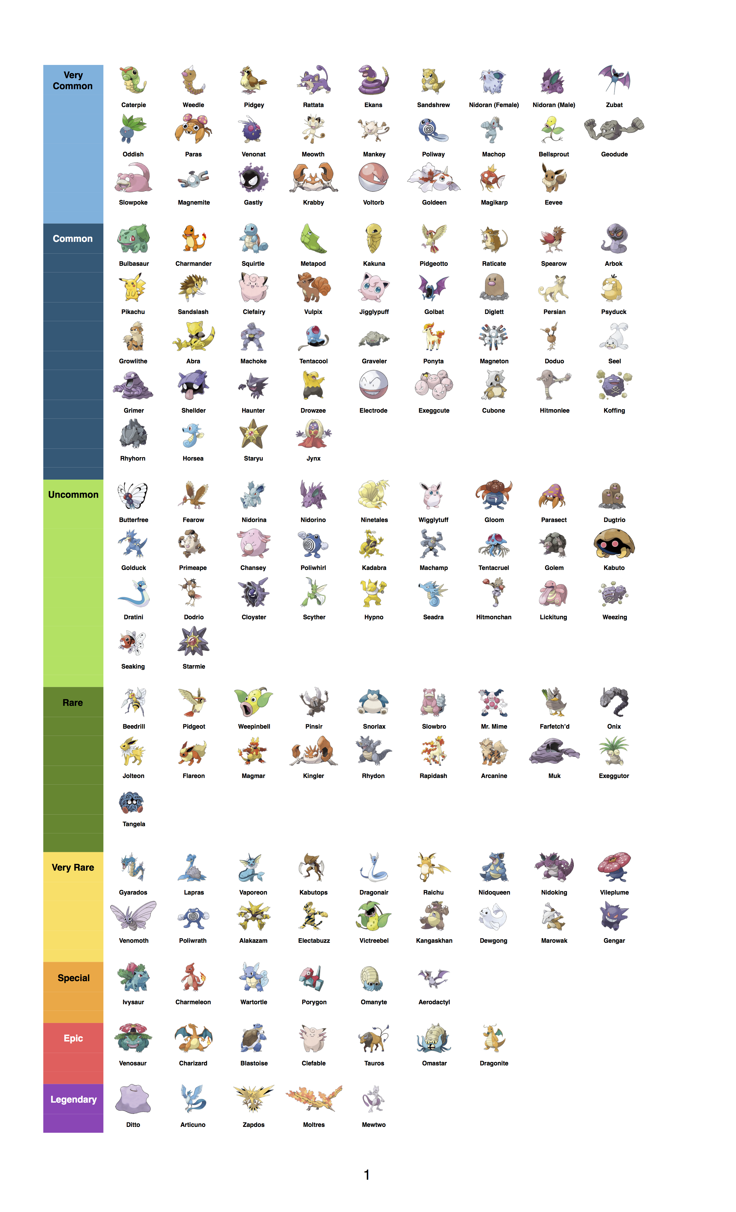 | 129 | Magikarp | 1 | Medium |