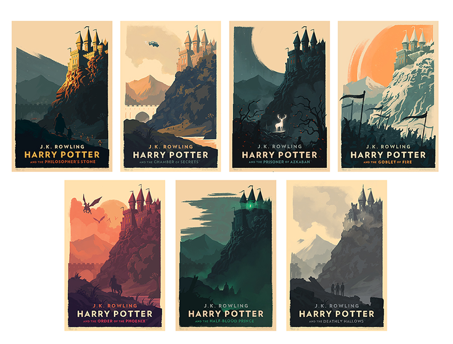 ภาพโปรเตอร์ชุดนี้เป็นผลงานของศิลปินชาวอังกฤษ Olly Moss เจ้าของผลงาน 85 Years of Oscars และยังเป็นผู้ออกแบบปกหนังสือชุด Harry Potter ฉบับ e-Book ที่ขายในเยอรมันในปี 2015 โดยจุดเริ่มต้นของการสร้างสรรค์โปสเตอร์ชุดนี้เริ่มจากเว็บไซต์ Pottermore (เว็บไซต์ที่ J.K. Rowling เปิดขึ้นเพื่อมอบให้แก่แฟนคลับ Harry Potter โดยเฉพาะ) ได้ขอให้ศิลปินคนนี้ออกแบบโปสเตอร์ Harry Potter ทั้ง 7 เล่มในสไตล์ของ Olly Moss