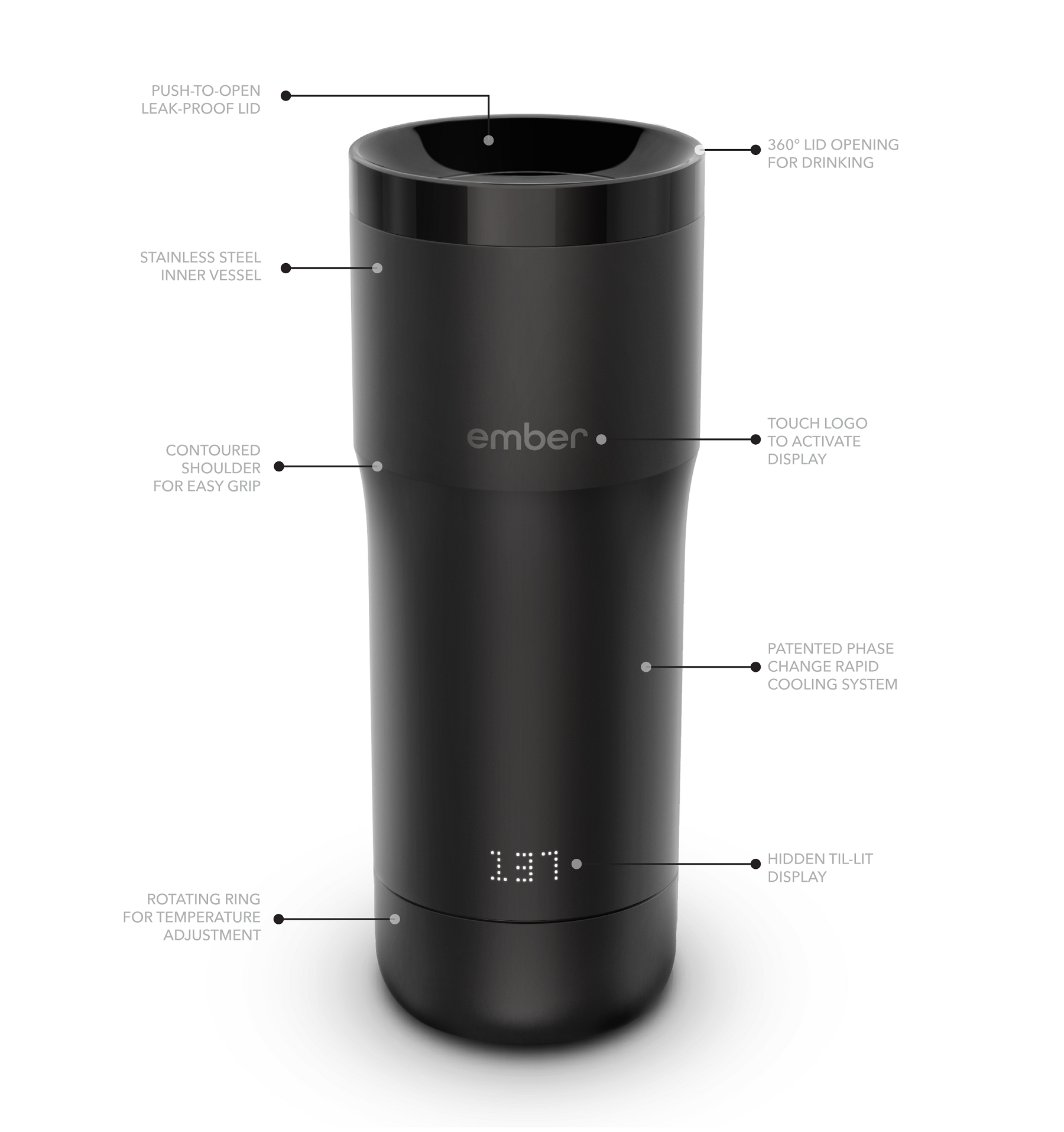 หลายๆนั้นคนมักประสบปัญหากาแฟเปลี่ยนอุณหภูมิเนื่องจากการกินกาแฟพร้อมกับนั่งทำงานหรืออ่านหนังสือไปด้วย ซึ่งในบางครั้งอาจใช้ระยะเวลานานจนอุณหภูมิของกาแฟเปลี่ยนจนทำให้เสียรสชาติได้ การมีแก้วกาแฟ Ember นั้นก็จะช่วยให้เราได้ลิ้มรสชาติของกาแฟร้อนๆอยู่ตลอดเวลา โดยหลักการใช้งานของแก้วนี้ก็แบ่งออกเป็น 2 ส่วนคือ การควบคุมอุณหภูมิผ่านทางแอปพลิเคชันบนสมาร์ทโฟน (รองรับทั้ง ios และ android) และควบคุมอุณหภูมิจากการหมุนปรับระดับที่ฐานของแก้วด้านล่าง