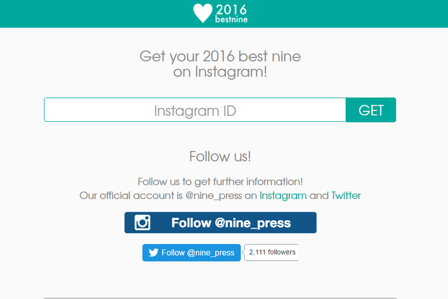 หลายคนคงรู้สึกคุ้นเคยกับแฮชแท็ก #2015bestnine ซึ่งเกิดขึ้นเมื่อปีที่แล้ว โดยบริษัท Lip Inc. ได้สร้างเว็บไซต์ชื่อ 2015bestnine.com ที่สามารถประมวลภาพถ่าย 9 ภาพที่มียอดไลค์มากที่สุดในปี 2015 บนอินสตราแกรม เพื่อบอกเล่าถึงความทรงจำในปีที่กำลังผ่านพ้นไป และในปีนี้แฮชแท็กนี้ก็ได้กลับมาอีกครั้งในชื่อ #2016bestnine