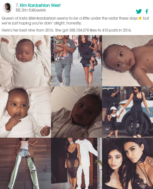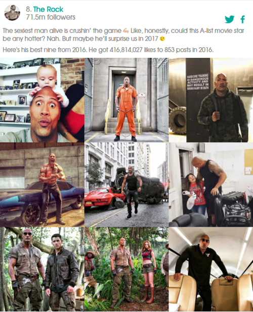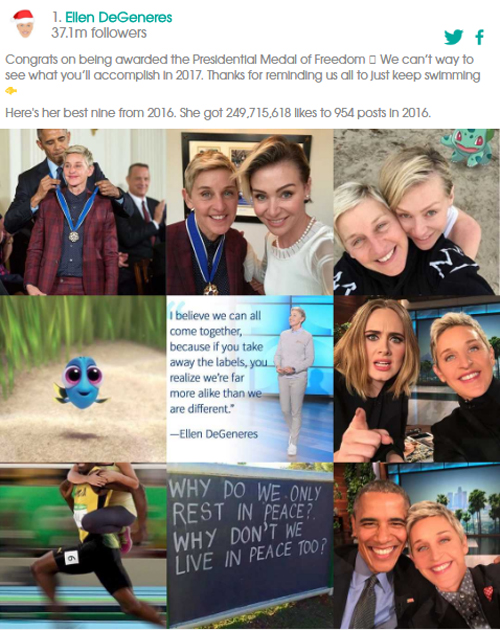 นอกจากนี้ 2016bestnine.com ยังช่วยสรุปจำนวนยอดไลค์ที่ได้รับและจำนวนโพสต์ในปี 2016 ได้อีกด้วย ดังนั้นใครที่สงสัยใคร่รู้ว่าในปีนี้คนดังในดวงใจมีรูปไหนโดดเด่น ได้ยอดไลค์ทั้งหมดเท่าไร และโพสต์ภาพไปกี่ภาพ #2016bestnine จึงเป็นผู้ช่วยหาคำตอบให้เราได้นั่นเอง แน่นอนว่าบริษัทโฆษณาหัวใสทั้งหลายสามารถเข้าถึงข้อมูลดังกล่าวของคนดัง เพื่อนำไปเป็นข้อมูลในการพิจารณาในการจ้างโพสต์ได้อีกด้วย