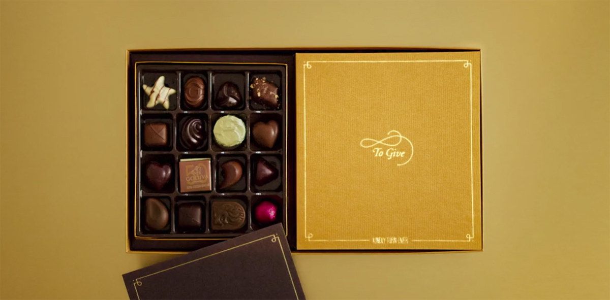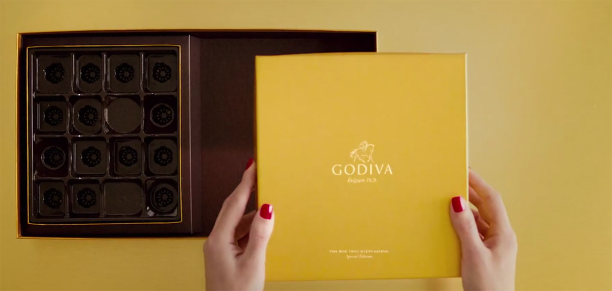 ล่าสุดกับ Godiva ช็อกโกแลตสัญชาติเบลเยี่ยมที่มีสาขาอยู่ทั่วโลก ได้ทำเก๋โดยการออกแบบบรรจุภัณฑ์ใหม่เพื่อต้อนรับช่วงเทศกาลกับแนวคิดที่ว่า “The Box that Keeps Giving.” หรือ “กล่องแห่งการแบ่งปัน” โดยลักษณะภายนอกของกล่องช็อกโกแลตยังคงมาในรูปแบบสีทองสุดเรียบง่ายอันเป็นเอกลักษณ์ แต่เมื่อเปิดกล่องออกนั้นจะพบกับช็อกโกแลตจำนวน 16 ชิ้นเรียงตัวอยู่ในถาด พร้อมกับกล่องช็อกโกแลตสีทองที่อยู่ด้านข้างอีกกล่องหนึ่ง ซึ่งเป็นการเพิ่มลูกเล่นให้กับบรรจุภัณฑ์โดยการให้ผู้รับ ได้ส่งต่อช็อกโกแลตGodivaให้กับผู้อื่นต่อไปให้สมกับแนวคิดที่ว่า “กล่องแห่งการแบ่งปัน” นั่นเอง