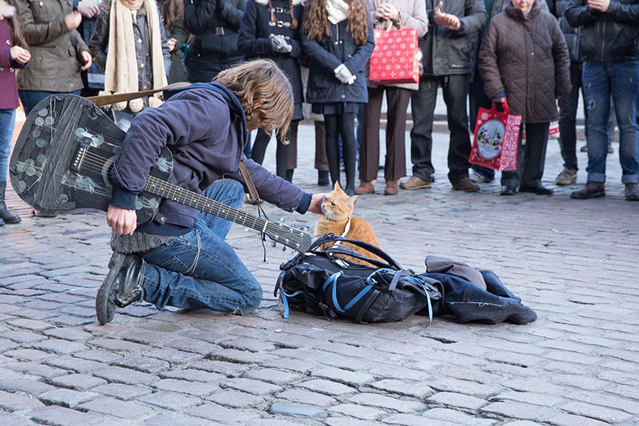 นั่นคงเป็นเหตุผลหนึ่ง ที่ James Bowen ผู้เขียนหนังสือชื่อ A Street Cat Named Bob (2010) ได้เคยใช้ชีวิตเป็นคนไร้บ้านตั้งแต่อายุได้ 18 ปี หลังจากที่เขาผิดหวังกับปัญหาครอบครัว และได้ตัดสินใจมาใช้ชีวิตบนท้องถนน ก่อนที่จะเลือกเสพยาเสพติดเพื่อหนีปัญหา แล้วทำให้กลายมาเป็นผู้ติดยาเสพติดเฮโรอีนเรื้อรัง จนเกือบเสียชีวิตเพราะเสพยาเกินขนาด ซึ่งทำให้เขาต้องเข้าสู่คอร์สการบำบัดให้เลิกยาด้วยสารสังเคราะห์เมโธโดนในเวลาต่อมา