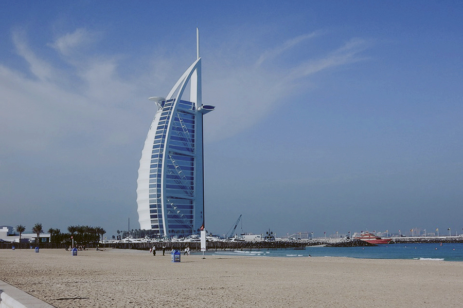 ขยับมาที่ประเทศตะวันออกกลางอย่าง สหรัฐอาหรับเอมิเรตส์ บุรจญ์อัลอาหรับ โรงแรมสุดหรูของเมืองดูไบ มีความสูงถึง 321 เมตร ถือเป็นโรงแรมที่สูงที่สุดอันดับที่ 4 ของโลก และเป็นตึกที่มีความสูงเป็นอันดับที่ 57 ของโลก ตึกแห่งนี้ตั้งอยู่บนเกาะเทียมที่ถูกถมขึ้นห่างจากชายฝั่งจูไมราบีช 280 เมตร มีโครงสร้างการออกแบบล้ำสมัยเลียนแบบมาจากใบของเรือใบ ถูกสร้างขึ้นเพื่อเป็นแลนด์มาร์กสำคัญของเมืองดูไบ