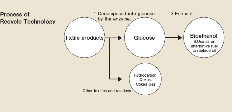 เพราะญี่ปุ่นได้ขึ้นชื่อว่ามีวิทยาการล้ำสมัยและไฮเทคโนโลยีในทุกๆ ด้าน ล่าสุดเกิดไอเดียพัฒนาเทคโนโลยีการรีไซเคิลของประเทศญี่ปุ่น การร่วมมือกันระหว่างสายการเจเแปนแอรฺ์ไลน์, สถาบันโลกสีเขียวแห่งโตเกียว และบริษัท Japan Environmental Planning พัฒนาเทคโนโลยีระบบผลิตเชื่้อเพลิงไบโอเอทานอล (bioethanol) จากกระบวนการการรีไซเคิลเสื้อผ้าที่ทอมาจากเส้นใยฝ้าย โดยเทคโนโลยีดังกล่าวจะแยกน้ำตาลออกจากเส้นใยฝ้าย เพื่อนำมาผ่านกระบวนการแปรรูปให้เป็นเอทานอล เพื่อใช้เป็นเชื้อเพลิงให้กับเครื่องบิน