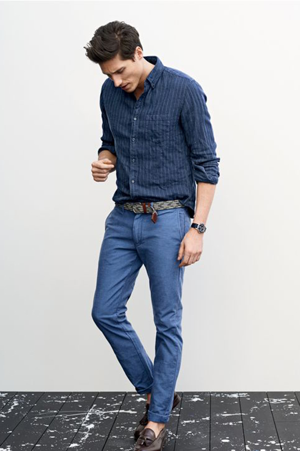โดยปกติแล้วการใส่เสื้อผ้าโทนสีเดียวกันทั้งตัว สำหรับผู้ชายอาจจะดูขำๆ แต่ไม่ใช่สำหรับ สี indigo เพราะการไล่เฉดสีเพื่อเพิ่มมิติให้กับผ้าครามแล้ว ถือเป็นลูกเล่นที่ดีที่น่าหยิบมาแม็ตช์กันในช่วงเวลานี้