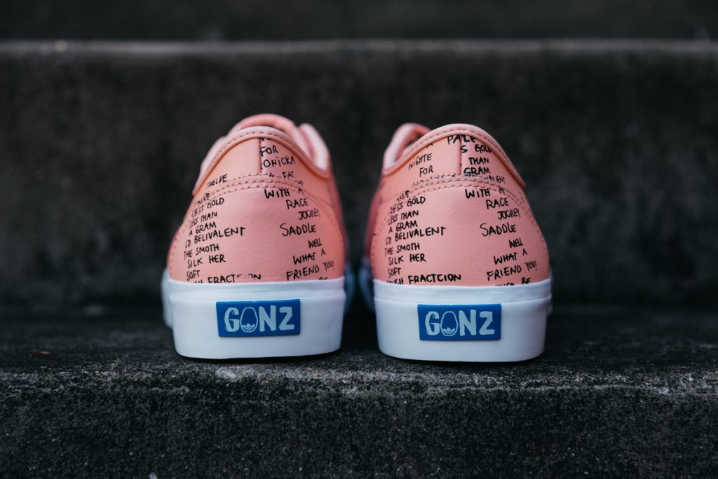อีกหนึ่งความสนุก ที่คุณผู้หญิงน่าจะชอบ การเขียนลายเส้นตัวอักษรแบบไม่ตั้งใจ ปั๊มพ์พิมพ์ลายลงบนผืนหนังรุ่น ADIDAS ADI-EASE สีส้มปะการัง แม้จะดูสวยทั้งสีและลวดลาย แต่หากมองไปให้ลึกในดีเทล GONZ กลับแฝงอารมณ์ขันไว้บนรองเท้า ไม่ว่าจะเป็น โลโก้ adidas ที่ลิ้นถูกปรับให้กลายเป็นผีขี้เล่น หรือการแอบใส่ชื่อตัวเองปะปนอยู่ในลายเส้นตัวอักษร จนทำให้คุณต้องไปหาเป็นปริศนา