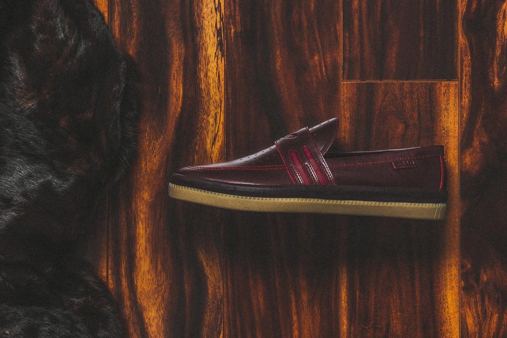 รองเท้าทรง Loafer ที่ได้แรงบันดาลใจมาจาก adidas 1988 Penny Loafer ผลิตจากหนังพรีเมี่ยมทั้งคู่ แน่นอนว่า adidas มักจะซ่อนดีเทลแถบ 3 ขีดสัญลักษณ์ของแบรนด์ไว้เสมอ แต่คู่นี้กลับใช้แค่ 2 ขีด เดินเส้นขนานไปกับรองเท้าด้วยได้สีแดง และพื้นรองเท้ายางที่ออกแบบมาเพื่อยึดเกาะกับบอร์ดได้อย่างดีเฉกเช่นเดียวกับรองเท้าผ้าใบ