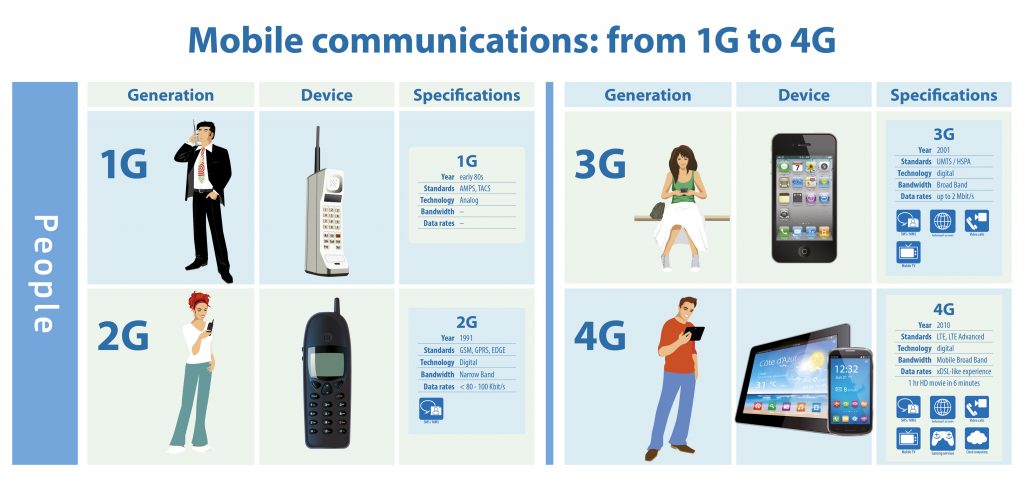 ย้อนรำลึกกันสักนิดระบบ 1 G ถือกำเนิดขึ้นครั้งแรกประมาณปี 1982 ซึ่งยังคงมาในรูปแบบของอนาล็อกเต็มตัว ก่อนที่จะกระโดดข้ามเข้าสู่ระบบดิจิตอลแบบ 2G ราวๆ ปี 1991 มาพร้อมรูปแบบการทำงานของ GPRS และ เทคโนโลยี EDGE หลังจากนั้นอีก 10 ปี ระบบ 3G ก็ถือกำเนิดขึ้นแต่ก็ยังไม่สามารถตอบสนองความต้องการ รองรับความเร็วของผู้ใช้งานได้มากที่สุด แต่มันก็ดีกว่าระบบแบบเก่าๆ และตอนนั้น Wifi ก็เข้ามาช่วยสนับสนุนการใช้งานผ่านอินเตอร์เน็ตได้แล้ว ซึ่งเป็นอีกหนึ่งทางเลือกให้ผู้บริโภคใช้งาน จนกระทั่งล่าสุดระบบ 4 G ถูกนำมาใช้อย่างแพร่หลาย แต่ก็ยังไม่ครอบคลุมทุกพื้นที่ในประเทศ ซึ่งถึงแม้ว่าเราจะได้ยินข่าวของ 5G มาสักพักใหญ่ แต่ก็คงยังไม่ใช่เร็วๆ นี้ที่ระบบใหม่จะถูกนำมาใช้ แต่น่าจะเริ่มเป็นรูปเป็นร่างในปี 2018 และจะกำหนดมาตรฐานของ 5G ในปี 2019 โดย สหภาพโทรคมนาคมระหว่างประเทศสาขาสหรัฐอเมริกา โดยค่ามาตรฐานนี้จะเป็นตัวกำหนดว่าเทคโนโลยีใดจะถูกเรียกว่า 5G บ้าง