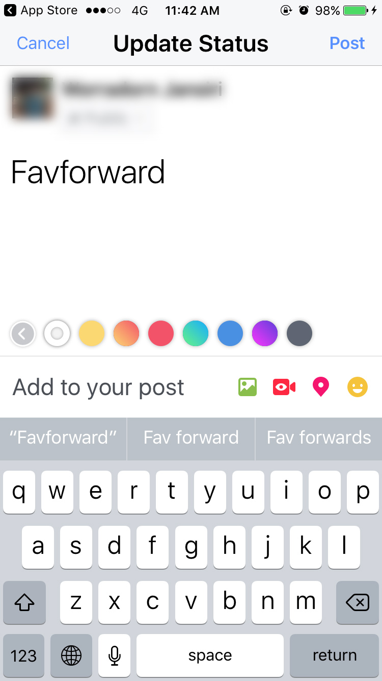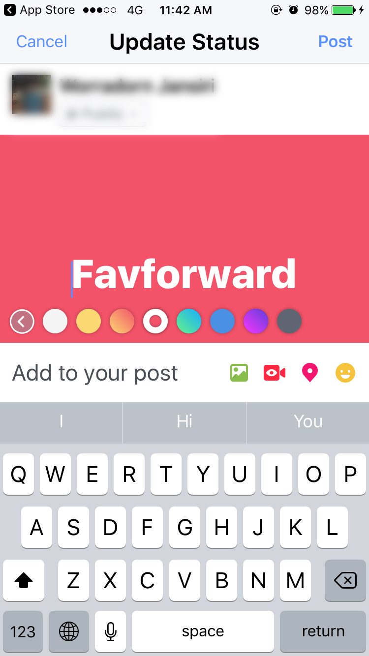 Facebook บน iPhone อัพเดตฟีเจอร์โพสต์ข้อความบนพื้นหลังสีได้แล้ว