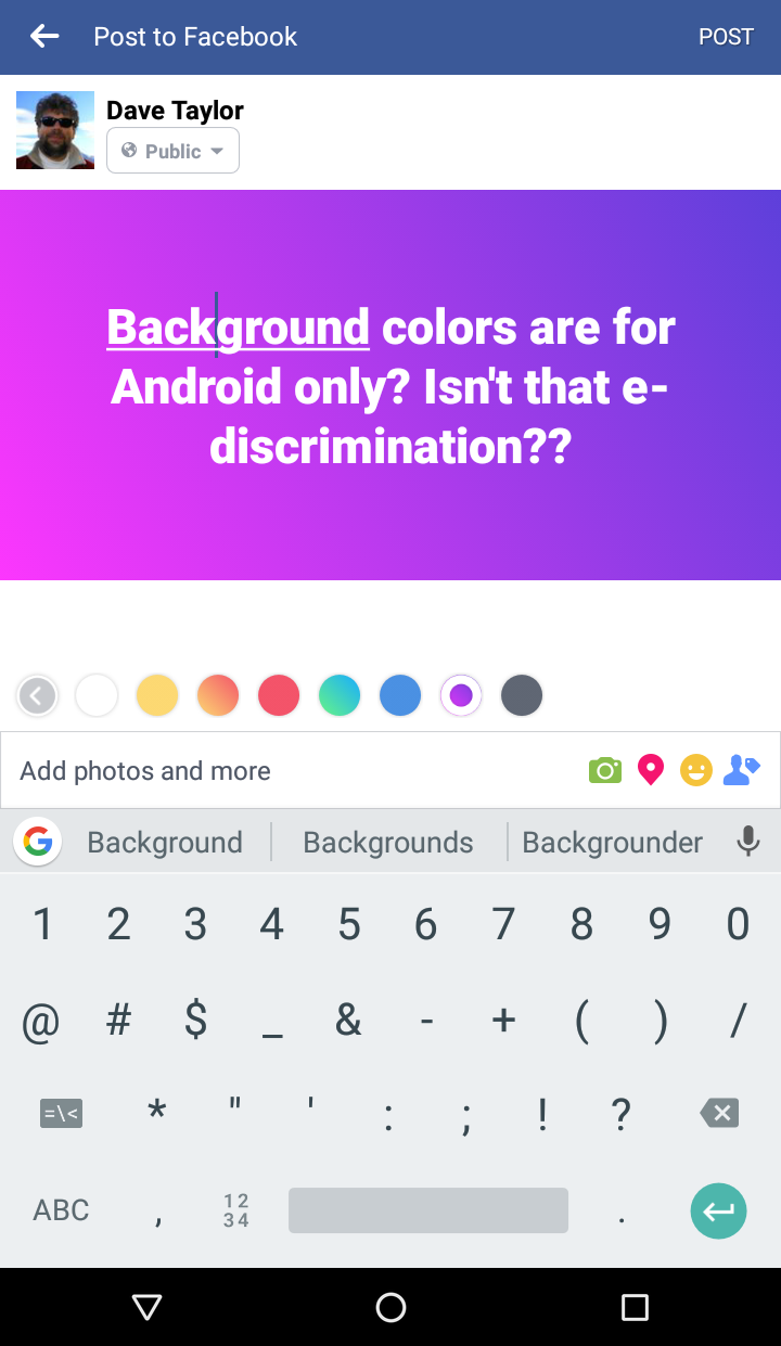 หน้าตาฟีเจอร์โพสต์ข้อความบนพื้นหลังสีบน Android