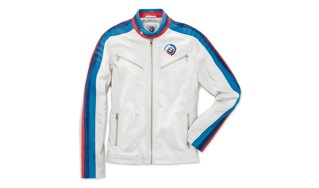 แจ็คเก็ตหนังสุดคลาสสิกกลายเป็นจุดเด่นของคอลเลคชั่นนี้ ถูกเล่นด้วยสีอันเป็นเอกลักษณ์ของแบรนด์ BMW จะเห็นได้จากรูปแบบของสีที่ทอดยาวตั้งแต่ในส่วนของคอเสื้อไปจนถึงส่วนปลายของแขนเสื้อ ส่วนตรงหน้าอกยังคงประดับด้วยโลโก้ของแบรนด์ BMW Motorsport จากต้นแบบเดิมเมื่อทศวรรษที่ 1970 ตอกย้ำถึงความเป็นแจ็คเก็ตหนังสไตล์มอเตอร์สปอร์ตได้อย่างลงตัว และยังคงให้ความรู้สึกมั่งคง ทนทาน ตามแบบฉบับของ BMW Motorsport เสมือนได้ย้อนกลับไปอยู่ในยุค 70s อีกครั้ง