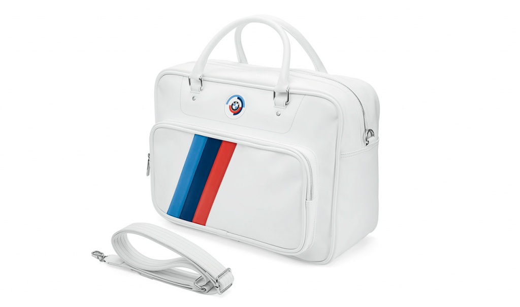 กระเป๋ากีฬา ด้านหน้าถูกประดับด้วยโลโก้ BMW Motorsport วัสดุภายในถูกบุด้วยผ้าใบอย่างดี มีสายสะพายคล้องไหล่ที่สามารถปรับได้ตามการใช้งาน