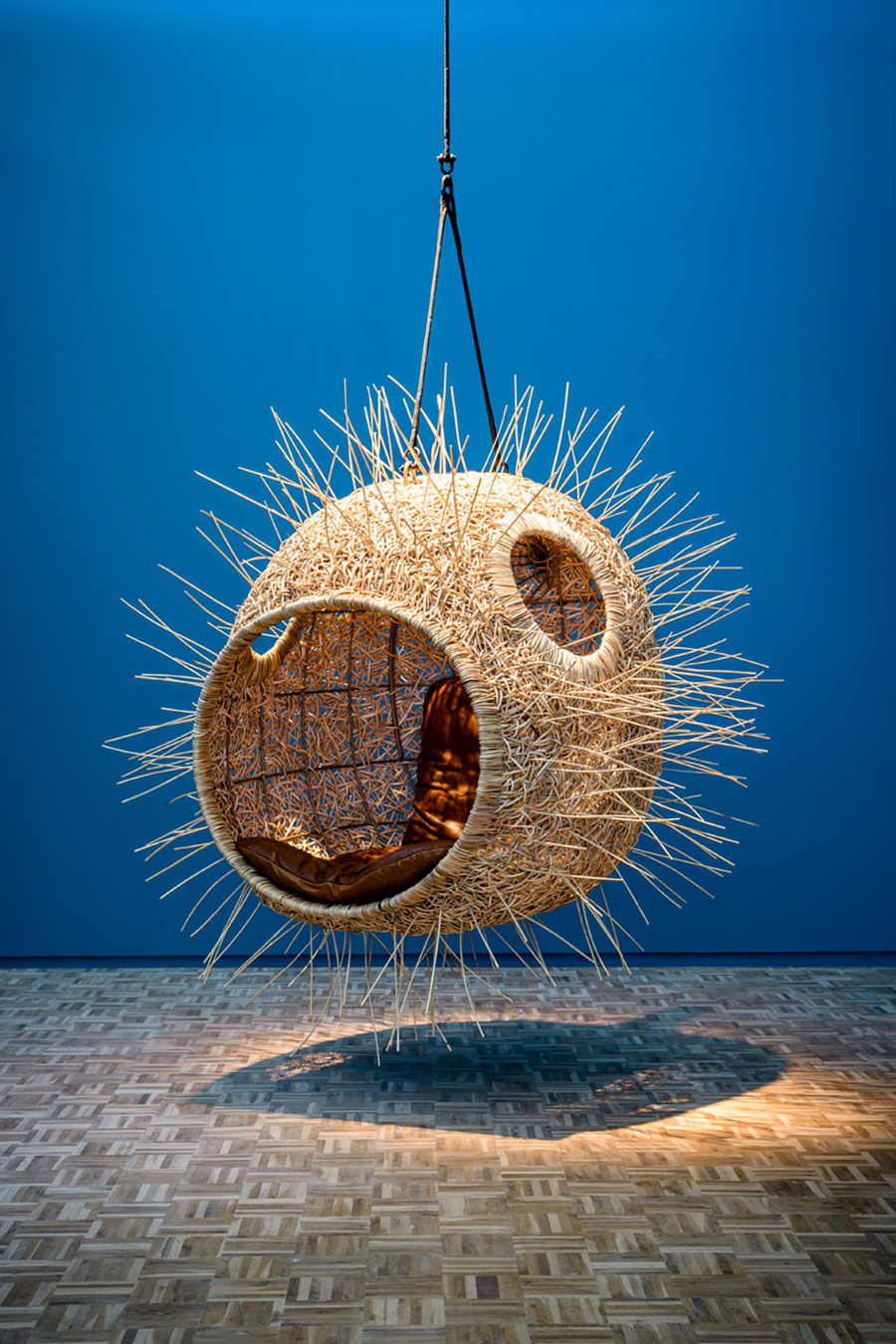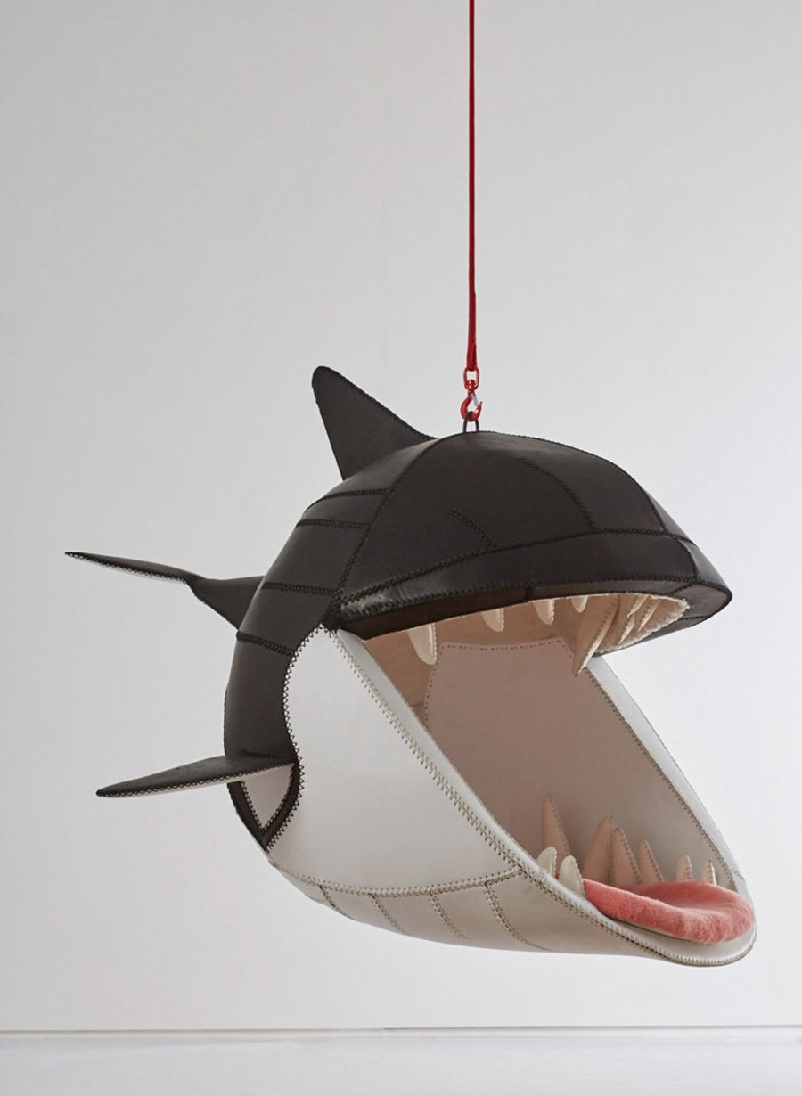 งานดีไซน์แสนน่ารักที่มี “สิ่งมีชีวิตในท้องทะเล” อย่างวาฬเพชรฆาต ฉลาม ปลาปักเป้า จระเข้ ฯลฯ เป็นแรงบันดาลใจในการออกแบบเป็นเก้าอี้แขวนที่ให้ความรู้สึกสนุก เพราะเราจะได้ไปนั่งชิลภายในปากของสัตว์เหล่านี้ โดยผลงานชิ้นนี้มีชื่อว่า Monstera Deliciosa เป็นผลงานออกแบบของ Porky Hefer โดยความพิเศษของงานดีไซน์นี้นอกจากรูปทรงที่สะดุดตาแล้ว Hefer ยังร่วมมือกับช่างฝีมือท้องถิ่น Ismael Bey ในการผลิตผลงานชิ้นนี้อีกด้วย Monstera Deliciosa จึงเป็นงานคราฟท์ที่ใช้ทักษะงานฝีมือแบบดั่งเดิมที่ใกล้สูญหายของชาวแอฟริกาใต้และเป็นผลงานที่รักษางานคราฟท์พื้นถิ่นเอาไว้อีกด้วย