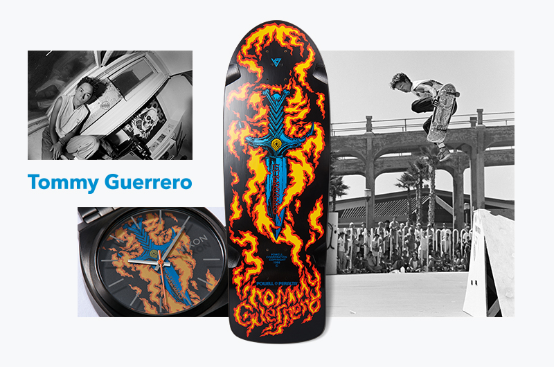 WHAT: ทีมสเก็ตบอร์ดสุดเทพยุค 80 ผู้ทำให้กีฬาชนิดนี้เป็นที่รู้จักไปทั่วโลกนำลวดลายกราฟฟิกจากแผ่นสเก็ตบอร์ดมาดีไซน์ผ่านหน้าปัดนาฬิกา NIXON รุ่น Time Teller หนึ่งในรุ่นยอดฮิตที่ขายดีไปทั่วโลก