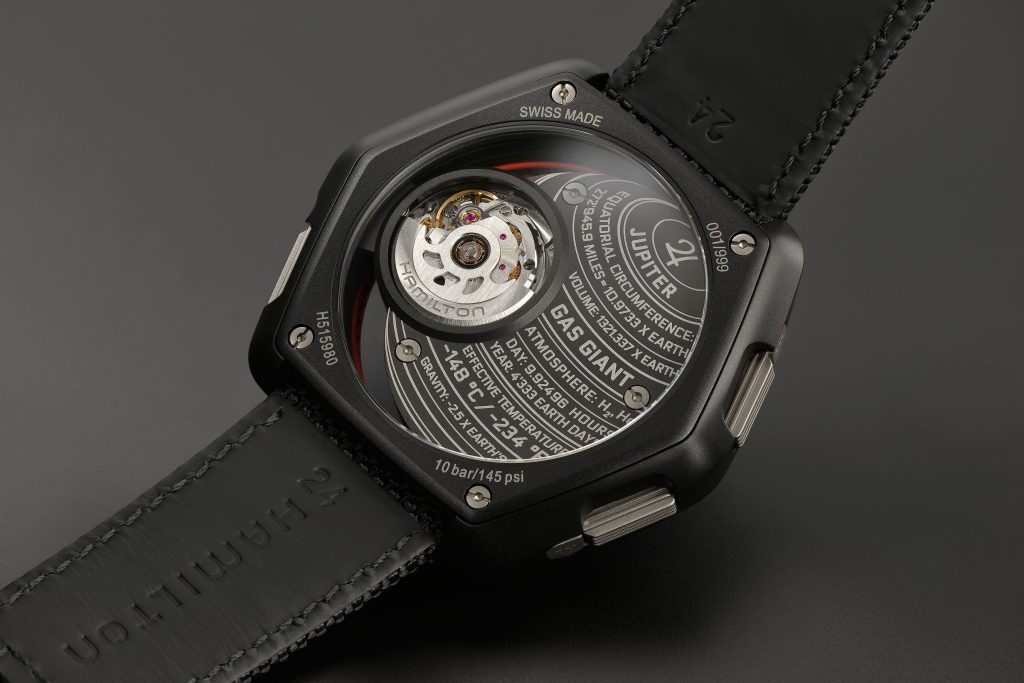 งานดีไซน์และความคิดสร้างสรรถูกเรียงร้อยเข้ากับเทคนิคและความเชี่ยวชาญในการทำนาฬิการะดับสูง เพื่อพัฒนาออกมาเป็นเรือนเวลาสุดทันสมัยรุ่นนี้ ด้วยรูปลักษณ์สุดผจญภัย หน้าปัดของเรือนเวลา ODC X-03 ประกอบด้วยหน้าปัดย่อย 3 วงล้อมรอบดาวพฤหัสบดี เพื่อคารวะต่อผลงานภาพยนตร์ระดับ Blockbuster ของ คูบริก นั้นต้องใช้กระบวนการมากกว่า 120 ขั้นตอนซึ่ง Hamilton ได้เลือกใช้เทคโนโลยีล่าสุดอย่างการพิมพ์แบบสามมิติและการแกะสลักด้วยเลเซอร์เข้ามาตอกย้ำความเป็นเรือนเวลาแห่งอนาคตได้อย่างเต็มภาคภูมิ