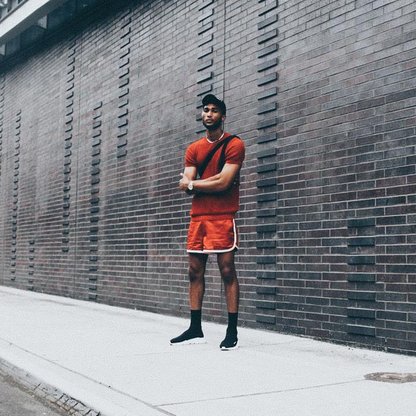 เปลี่ยนเสื้อยืดและกางเกงขาสั้นธรรมดาให้กลายเป็นลุค Casual ที่ดูดีขึ้นได้ด้วยการใส่Sock Sneakers เรียบๆสีเข้มที่แมทช์กับเครื่องประดับอย่างหมวกแก๊ปและกระเป๋าทรง Messenger