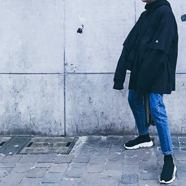 นำSock Sneakers มาแมทช์เข้ากับกางเกงยีนส์ 5 ส่วนเพื่อให้ได้ลุคที่ดู Street อีกทั้งยังช่วยเพิ่มสัดส่วนบริเวณขาให้ดูสูงมากยิ่งขึ้น ทั้งนี้อาจคอมพลีทลุคท่อนบนด้วยเสื้อยืดสักตัวหรือเสื้อเชิ้ตลายกราฟฟิกก็ดูดีได้เช่นเดียวกัน