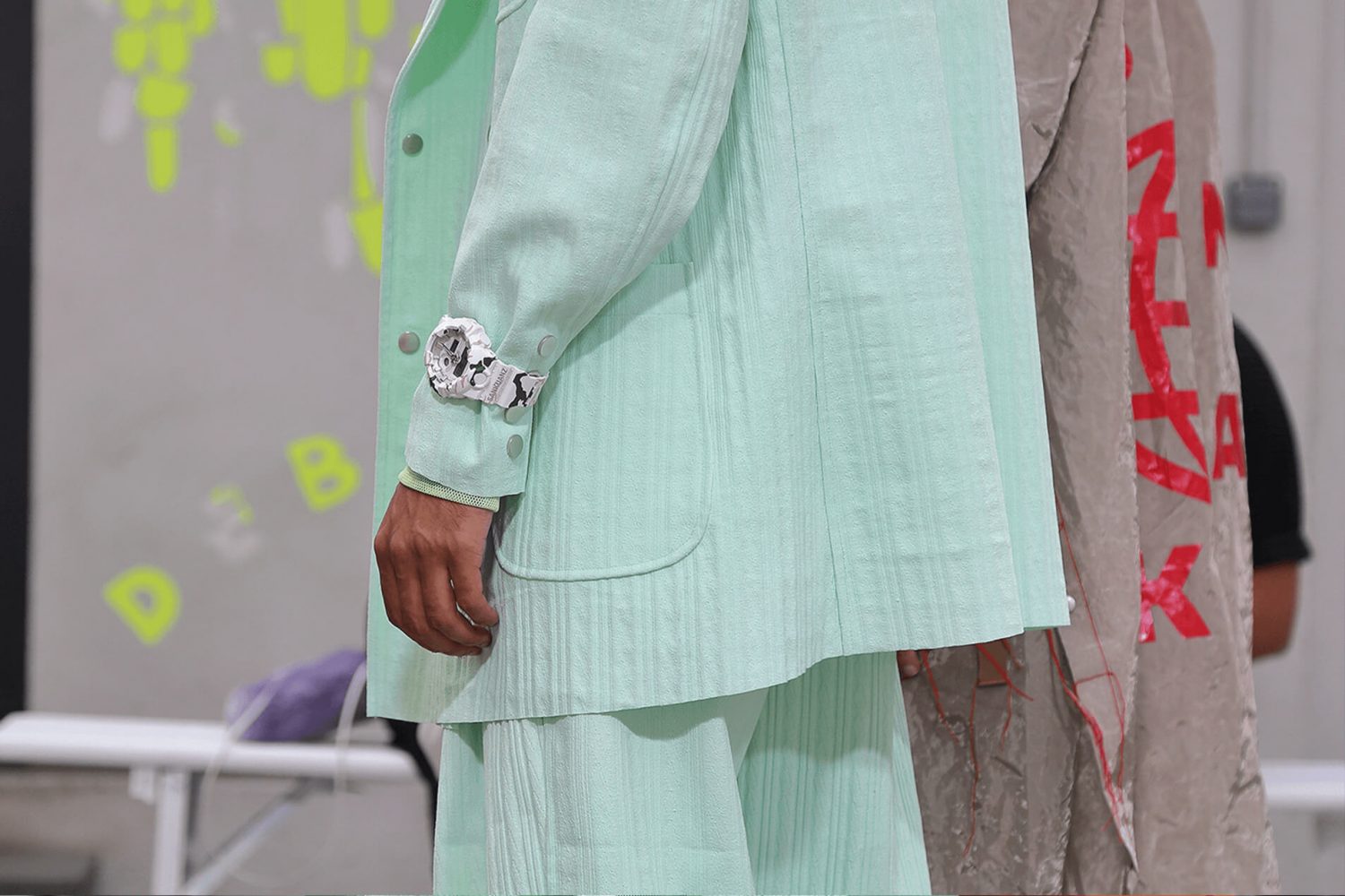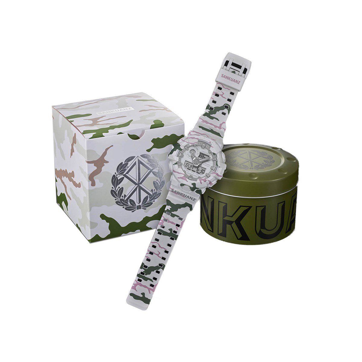 การร่วมมือของ G-Shock x Sankuanz ในครั้งนี้ยังมีความพิเศษที่ Chen Tianzhuo ตั้งใจดึงดูดแนวสตรีทแฟชั่นที่ทันสมัยสื่อถึงวัฒนธรรมของการสร้างเทรนด์แฟชั่น ผสมผสานกับเอกลักษณ์และจิตวิญญาณที่แข็งแกร่งของ G-Shock โดยหยิบเอาโมเดล GA700SKZ-7A ที่ Chen Tianzhuo ตั้งใจคัดสรรมาเพื่อโอกาสฉลองครบรอบ 35 ปีโดยเฉพาะ ผ่านการดีไซน์ด้วยลวดลายพรางคล้ายๆ มอสที่เจริญเติบโตในสภาพแวดล้อมอันทรหดของขั้วโลกเหนือ บริเวณสายของนาฬิกาผลึกด้วยชื่อแบรนด์ Sankuanz รวมถึงประทับโลโก้ที่เป็นลักษณ์ตัว S และ Z เพื่อบ่งบอกถึงความพิเศษของคอลเลคชั่นนี้ไว้ได้อย่างลงตัว
